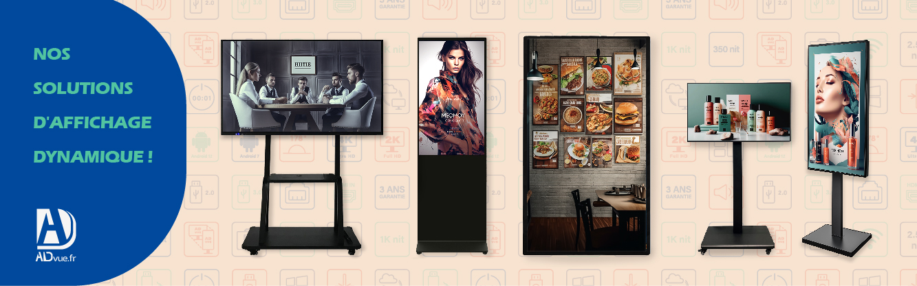 DURABILITÉ ET FIABILITÉ : Les écrans publicitaires commerciaux sont conçus pour une utilisation intensive dans des environnements commerciaux. Leur construction robuste et leur fiabilité supérieure les rendent plus adaptés à cet usage que les télévisions traditionnelles, qui sont généralement destinées à un usage domestique.
