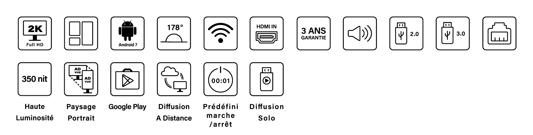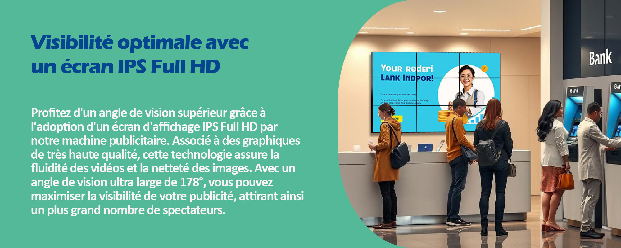 Les écrans intérieurs publicitaires sont des outils polyvalents pour promouvoir efficacement votre marque ou vos produits à l'intérieur de votre espace commercial. Dotés d'une technologie de pointe, nos écrans offrent une qualité d'image exceptionnelle et une visibilité optimale pour captiver votre public cible. Que ce soit pour afficher des promotions, des vidéos promotionnelles, des informations produits, ou des messages publicitaires, nos écrans intérieurs vous permettent de communiquer de manière dynamique et attrayante avec vos clients. Transformez votre espace intérieur en un véritable point focal de votre stratégie marketing grâce à nos écrans publicitaires intérieurs.
